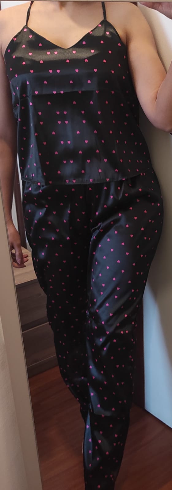 Pijama pantalón para mujer negro corazones